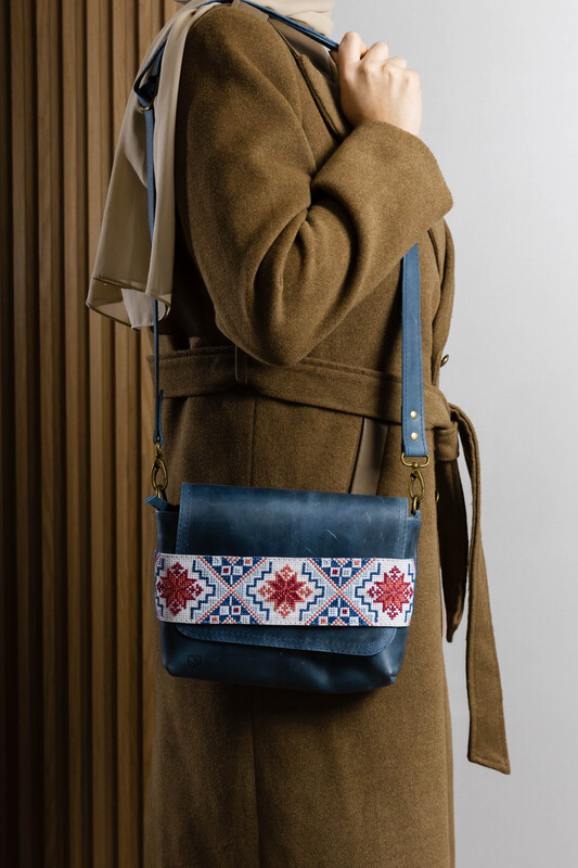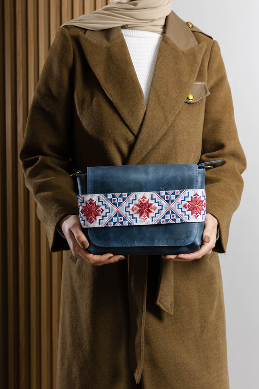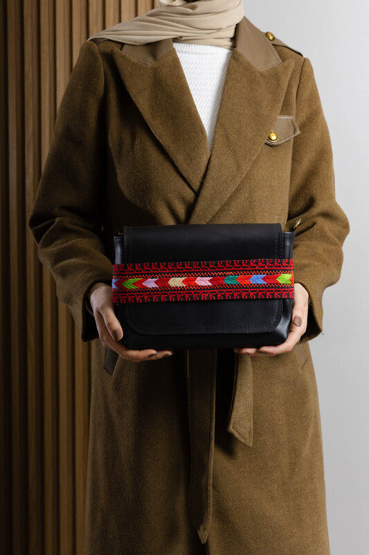 حقيبة جلد طبيعي 100% بتطريز فلسطيني يدوي