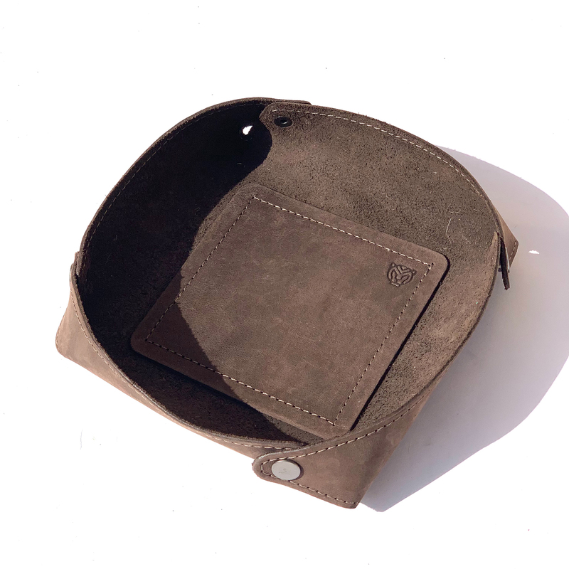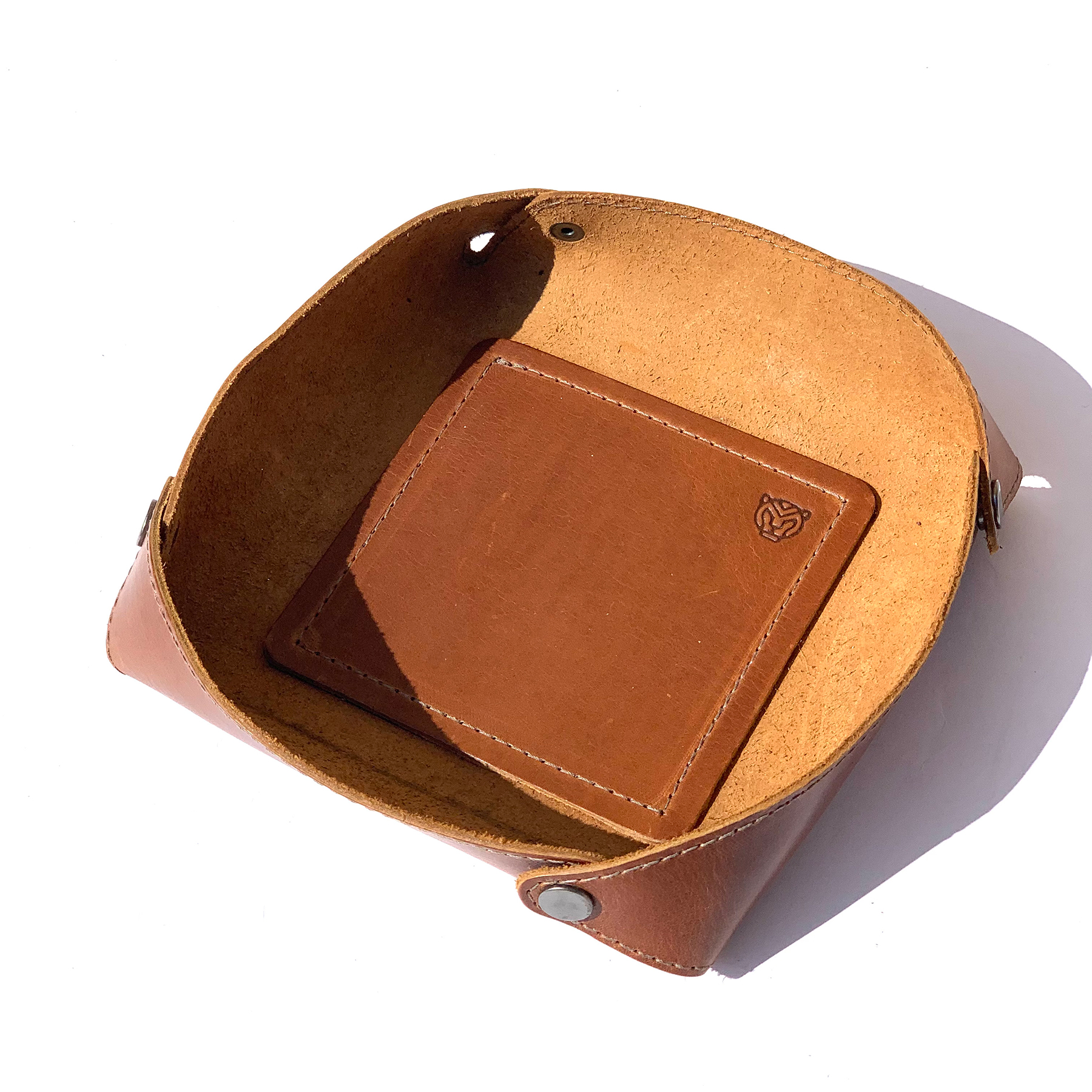 أضف لمسة من التنظيم الفاخر إلى مكتبك أو زاوية منزلك مع منظم المقتنيات الجلدي (Valet Tray). صُممت هذه القطعة لتكون الحل الأنيق لجمع مقتنياتك اليومية الأساسية مثل المفاتيح، الساعة، والعملات المعدنية في مكان واحد آمن ومنظم، مما يمنع فوضى الضياع ويضفي مظهراً راقياً على المكان.