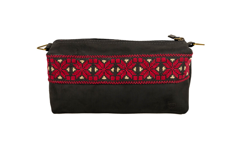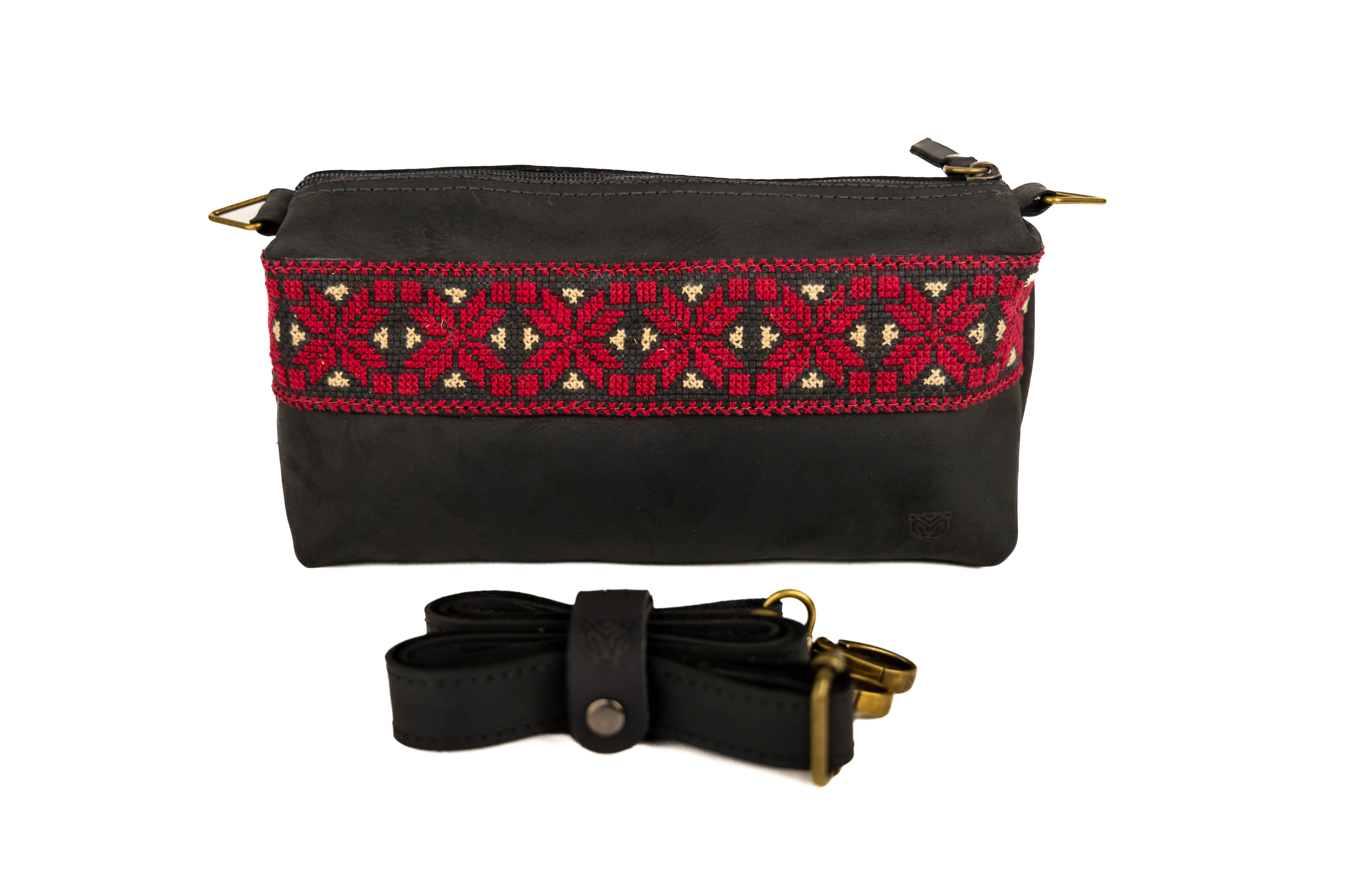 حقيبة من الجلد الطبيعي 100% مميزة بتفاصيل تطريز فلسطيني عريق