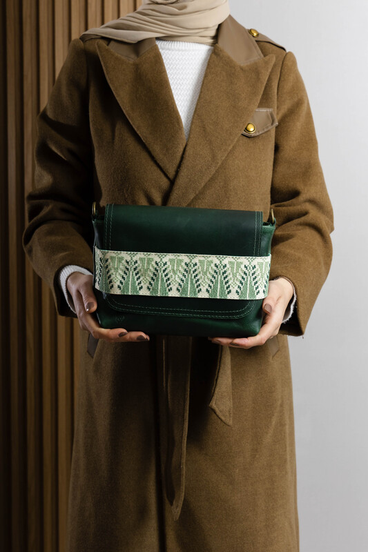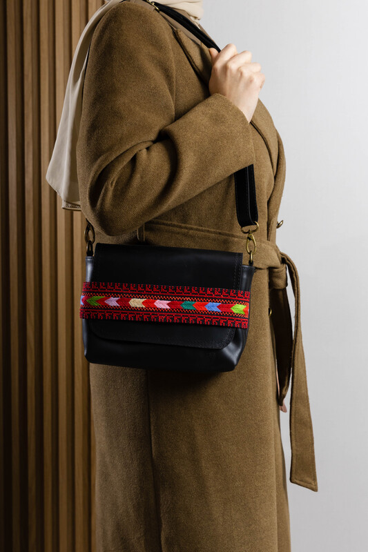 100% Genuine Leather Bag with Handmade Palestinian Embroidery Experience elegance with this premium genuine leather bag, meticulously handcrafted by Palestinian artisans. It perfectly blends traditional heritage with a modern design.