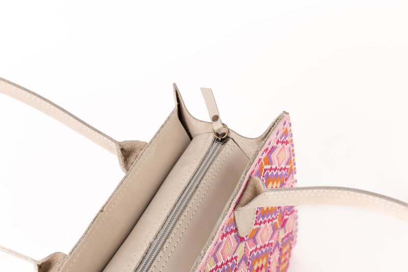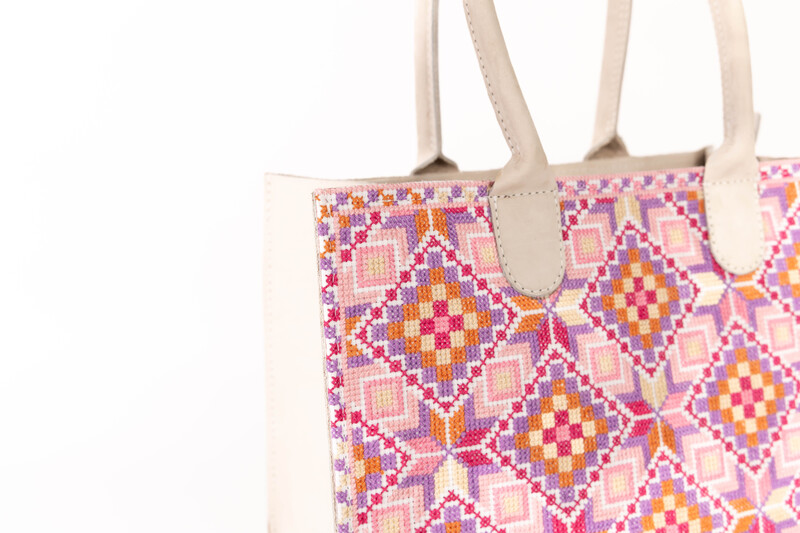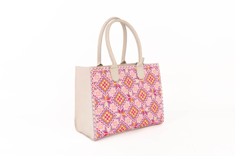 حقيبة مصنوعة من الجلد الطبيعي 100% مع تطريز يدوي أنيق ، مصممة بأيادي فلسطينية بإمتياز