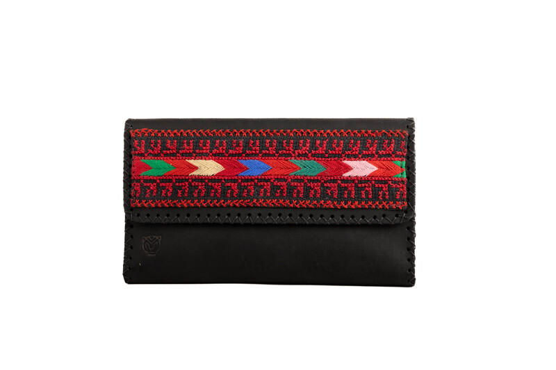 محفظة يد مصنوعة من الجلد الطبيعي 100% مع تطريز يدوي أنيق وبتصميم عملي قابل للطي ,تحتوي على :
