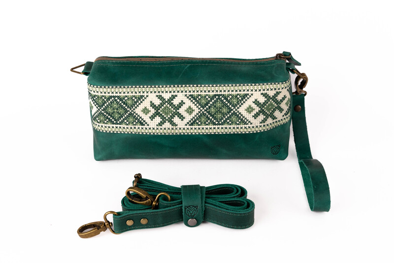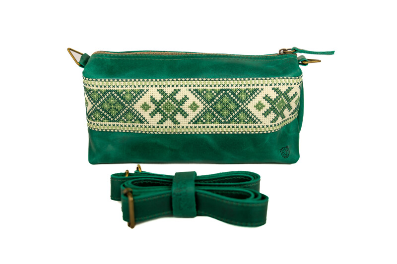 حقيبة من الجلد الطبيعي 100% مميزة بتفاصيل تطريز فلسطيني عريق