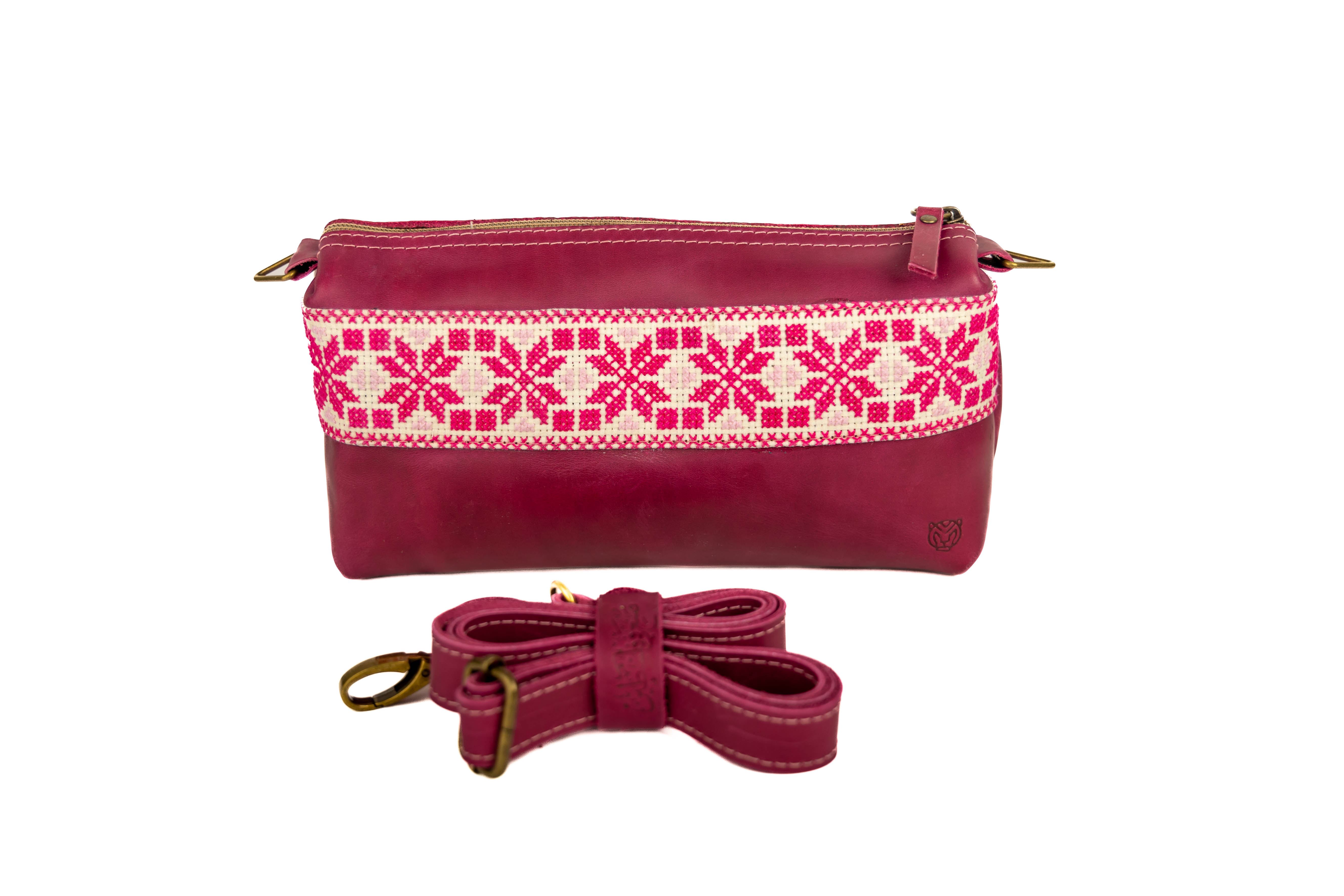 حقيبة من الجلد الطبيعي 100% مميزة بتفاصيل تطريز فلسطيني عريق