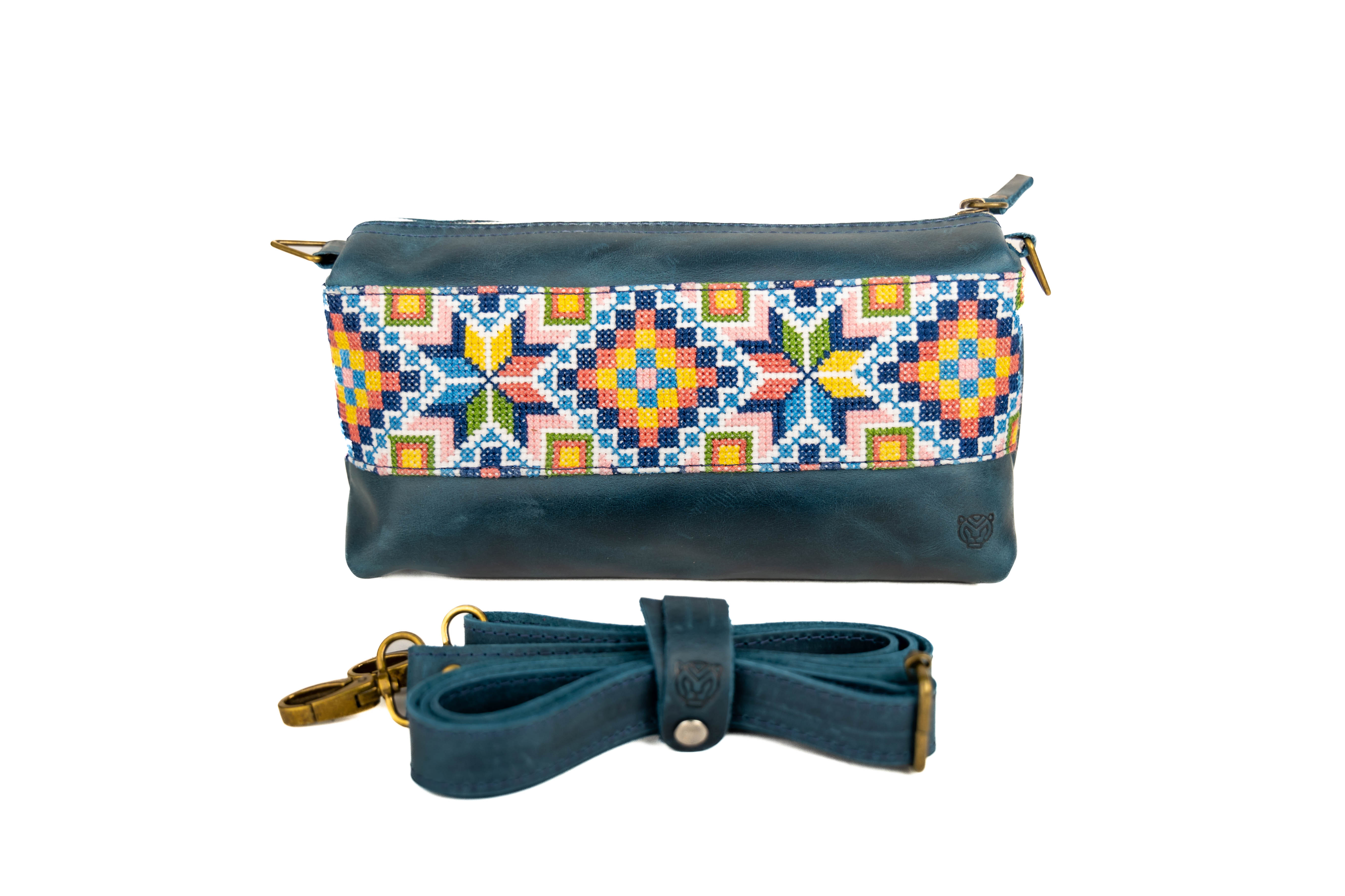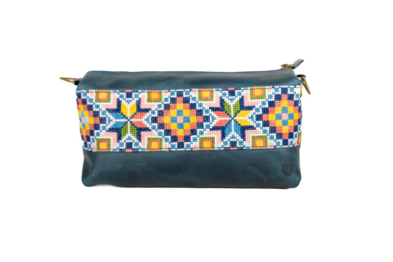 حقيبة من الجلد الطبيعي 100% مميزة بتفاصيل تطريز فلسطيني عريق