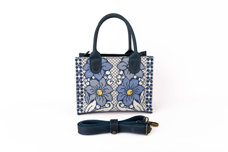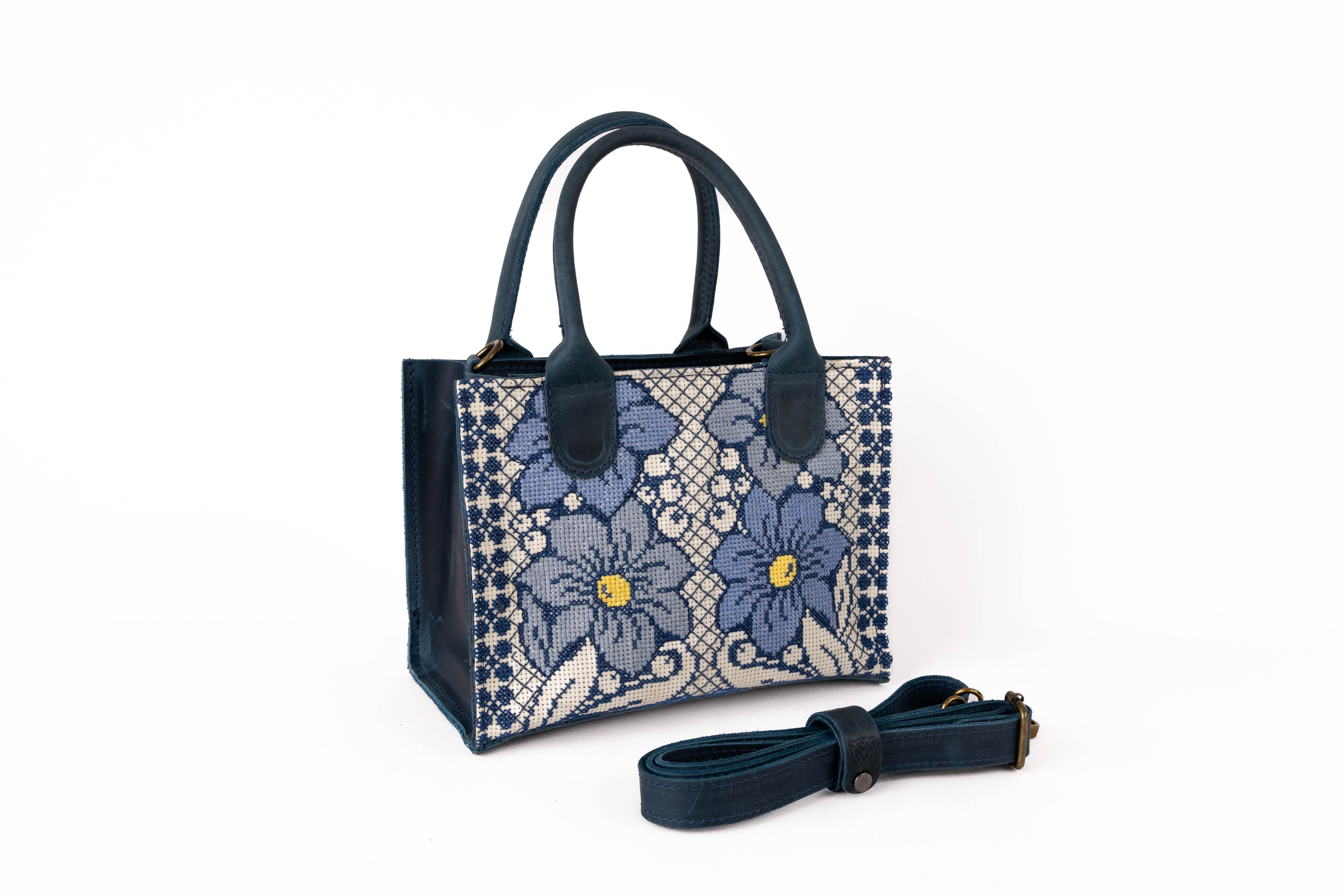 حقيبة tote صغيرة مصنوعة من الجلد الطبيعي 100% ،مع تطريز يدوي أنيق