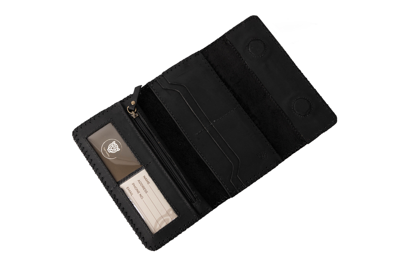 A 100% genuine leather wallet with elegant hand embroidery and a practical foldable design. Includes