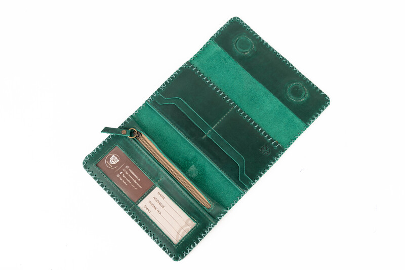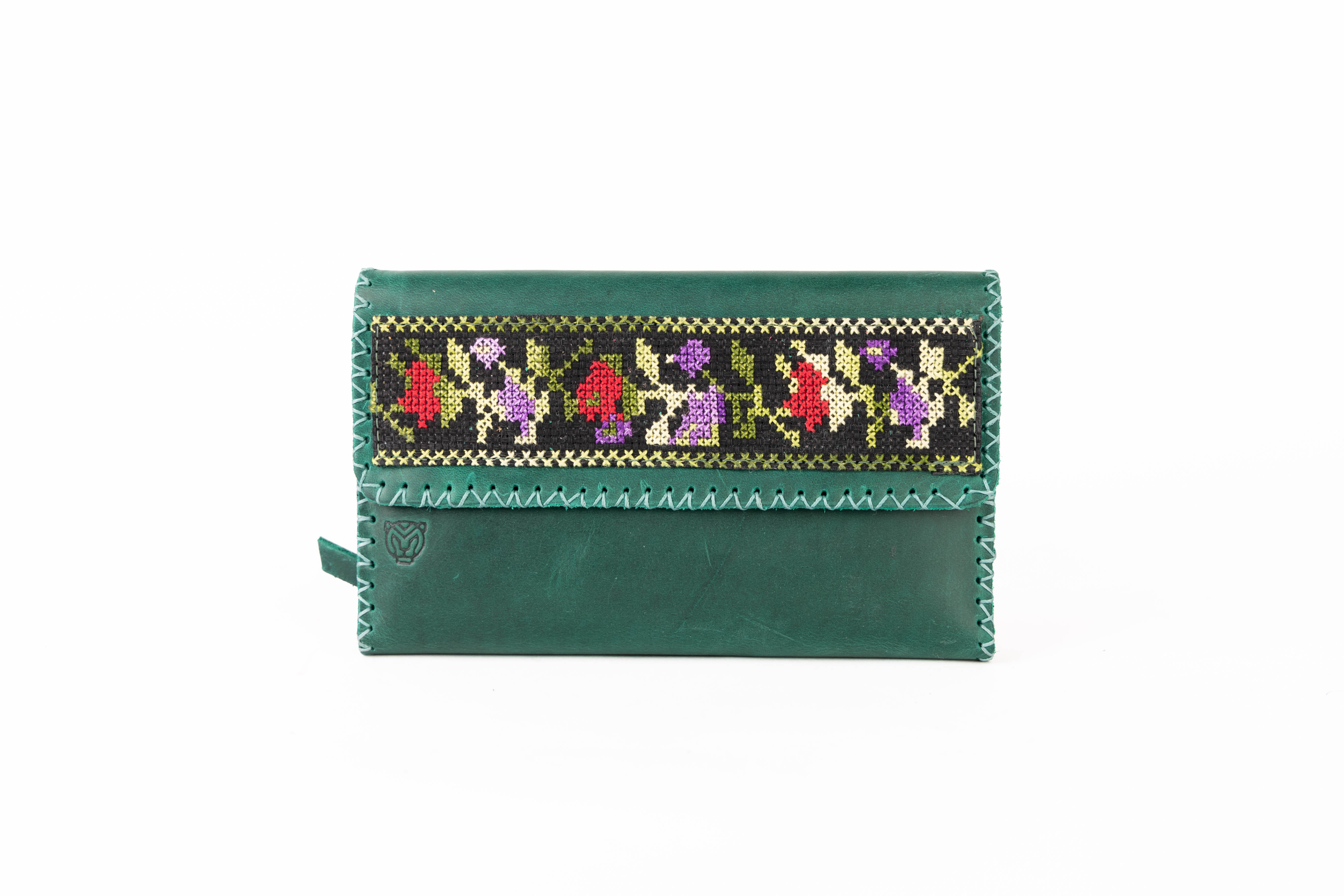 :A 100% genuine leather wallet with elegant hand embroidery and a practical foldable design Includes