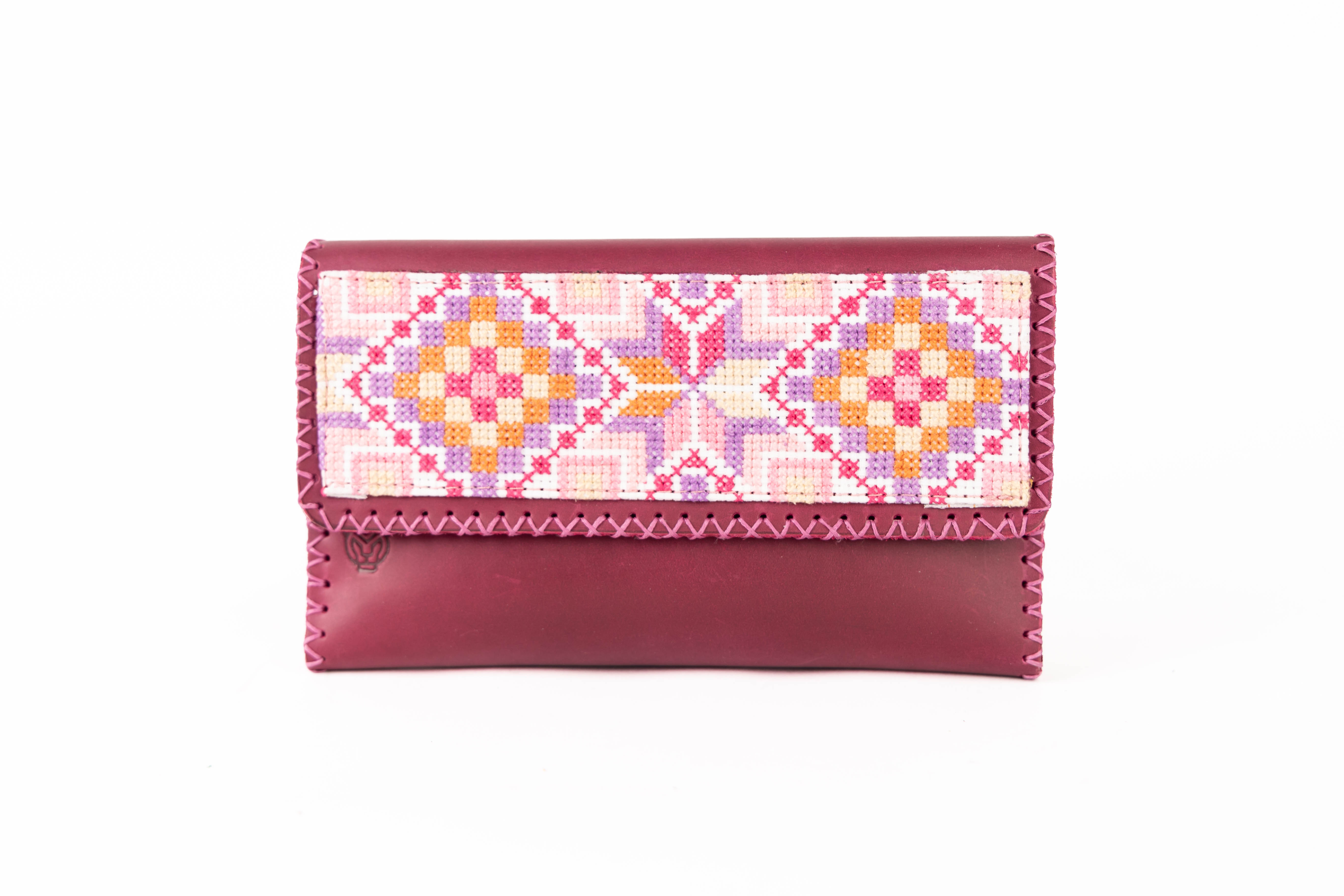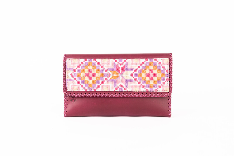 :A 100% genuine leather wallet with elegant hand embroidery and a practical foldable design Includes