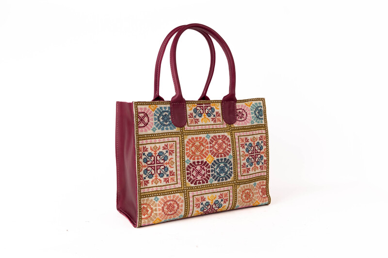 A bag made from 100% genuine leather with elegant hand embroidery, excellently crafted by Palestinian hands