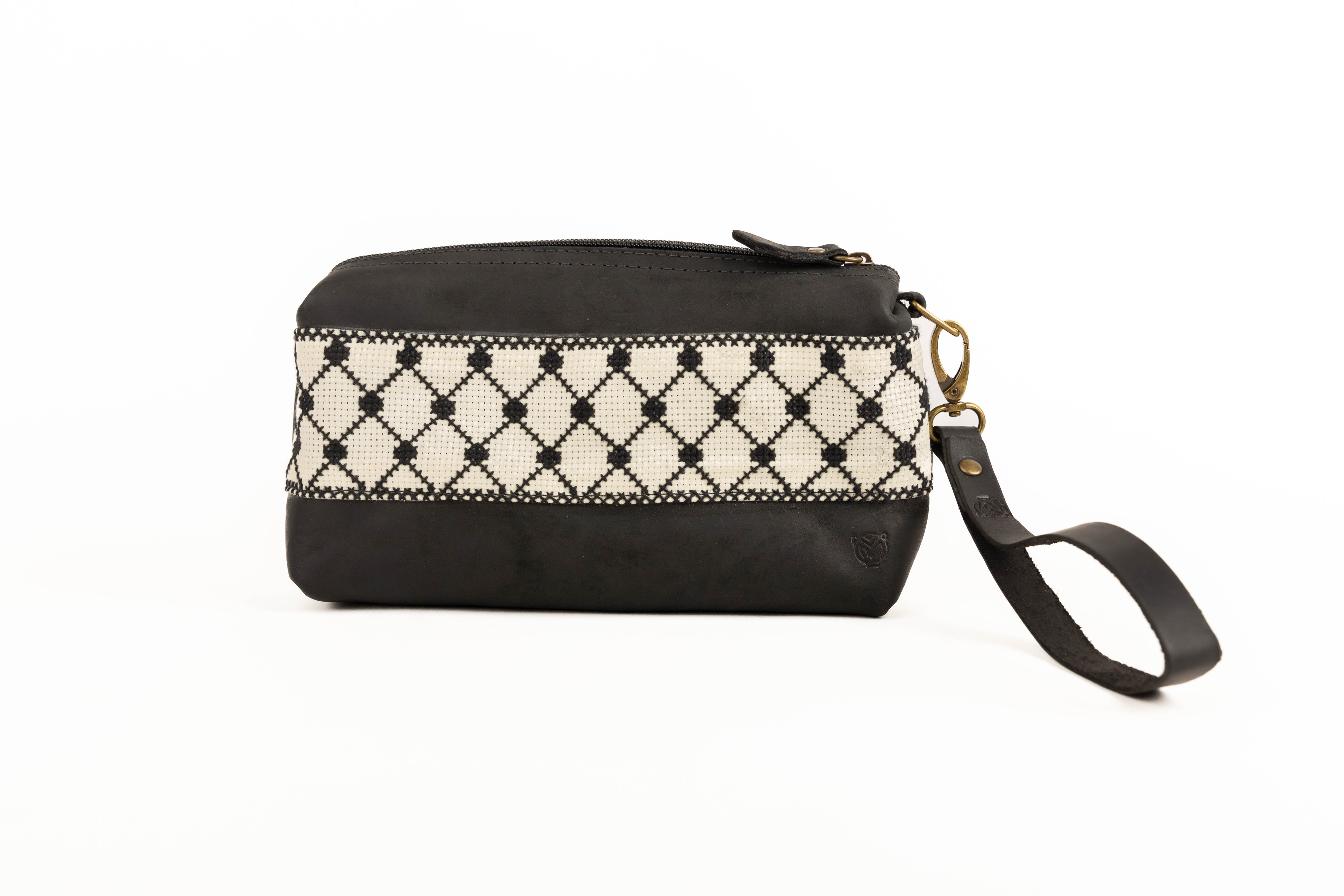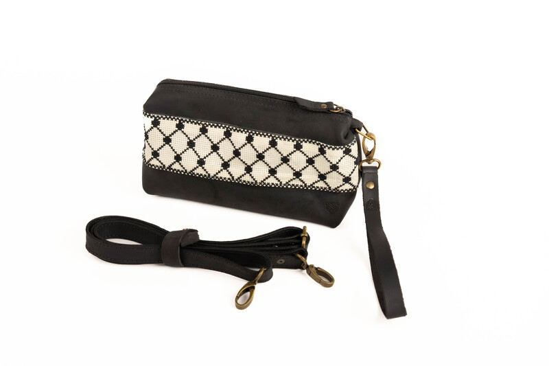 A 100% genuine leather bag featuring traditional Palestinian embroidery